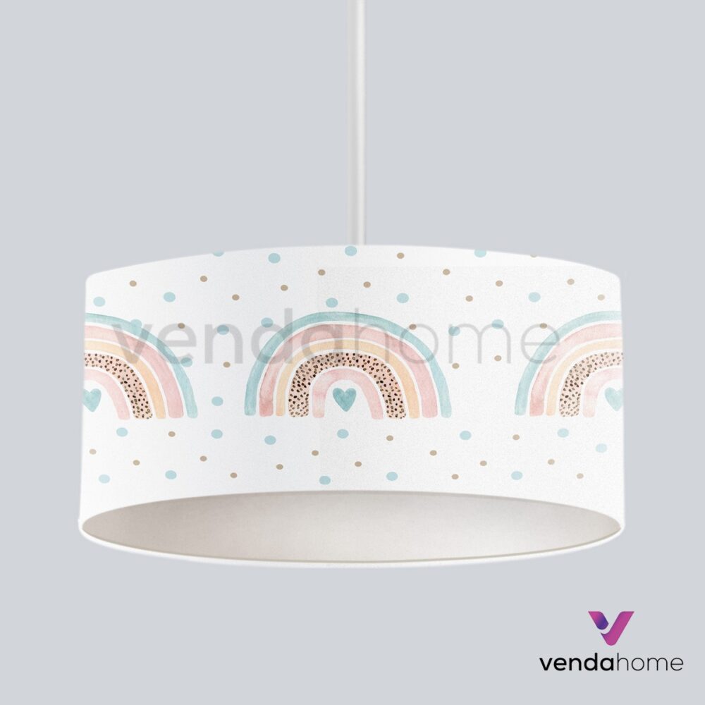 Gökkuşağı Bulutlar Kalp ve Puantiyeler Çocuk Odası Avize