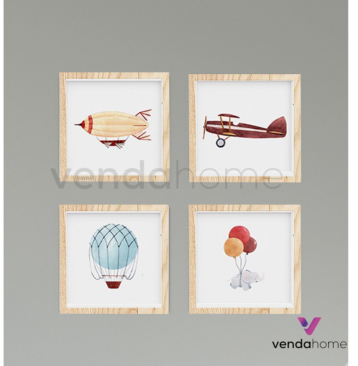 Klasik Planör Zeplin ve Balonlar Çocuk Odası 4’lü Duvar Tablosu