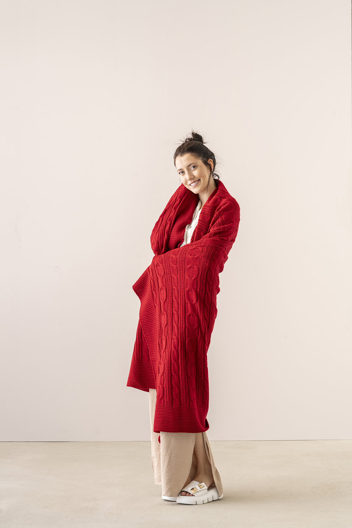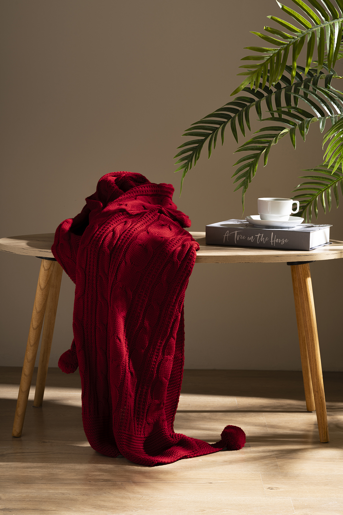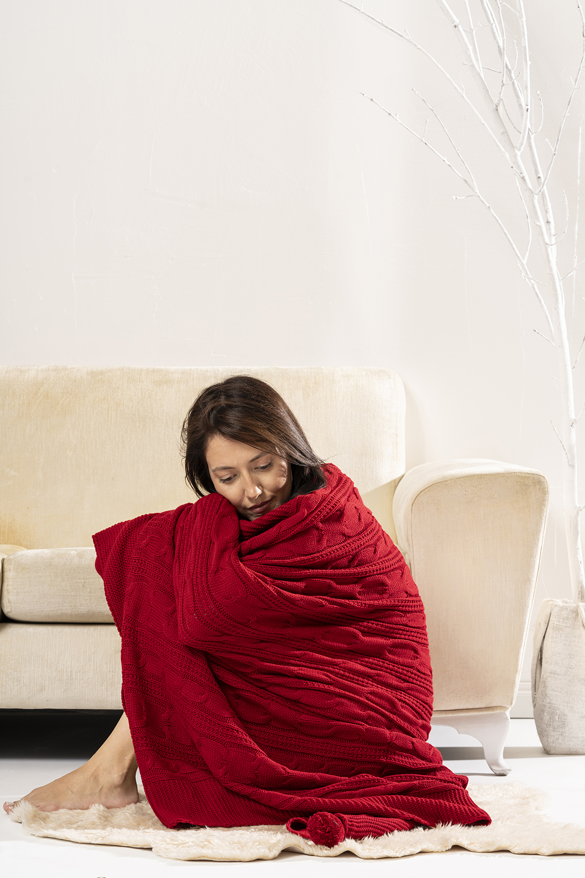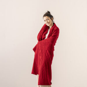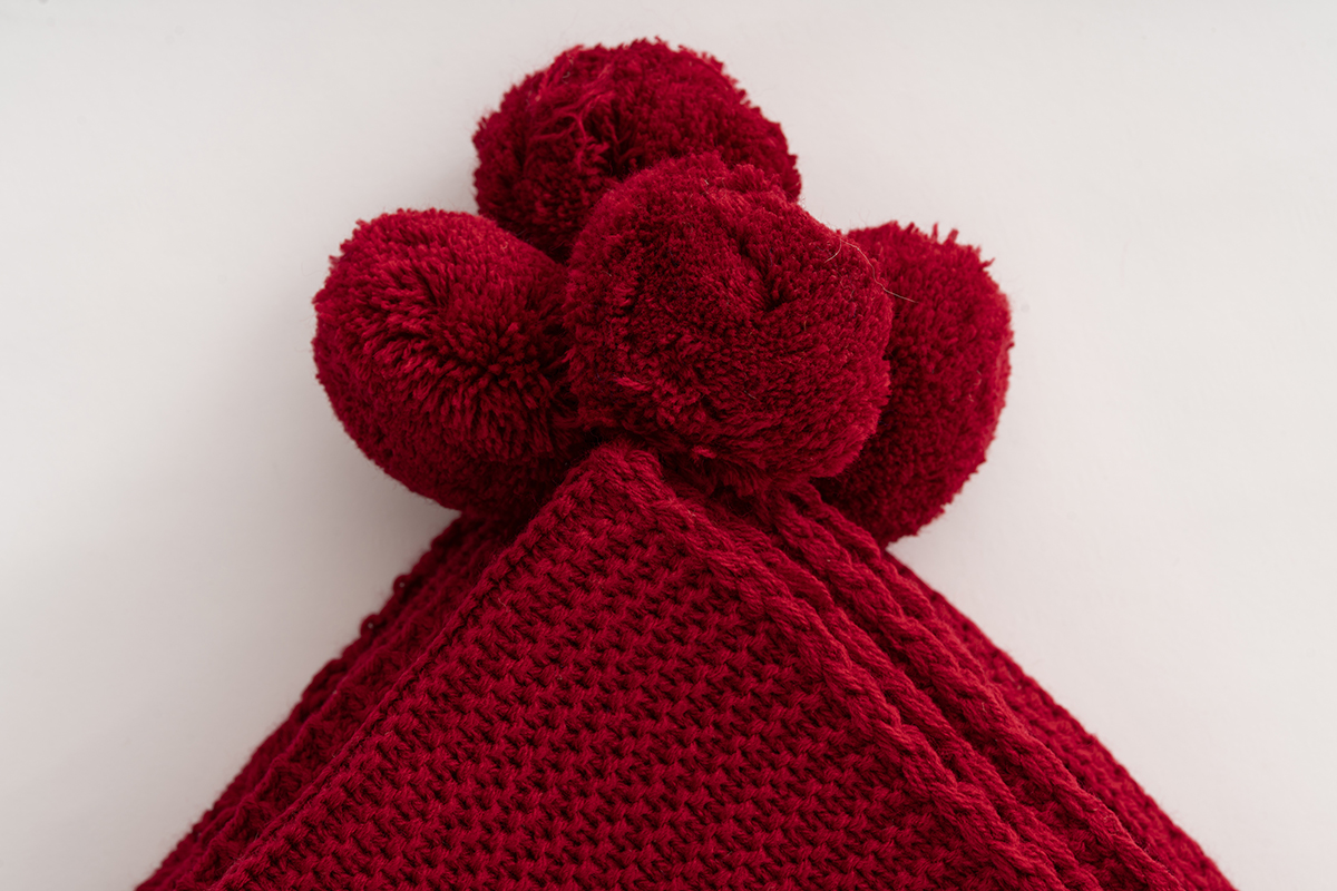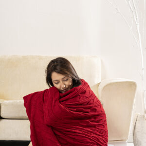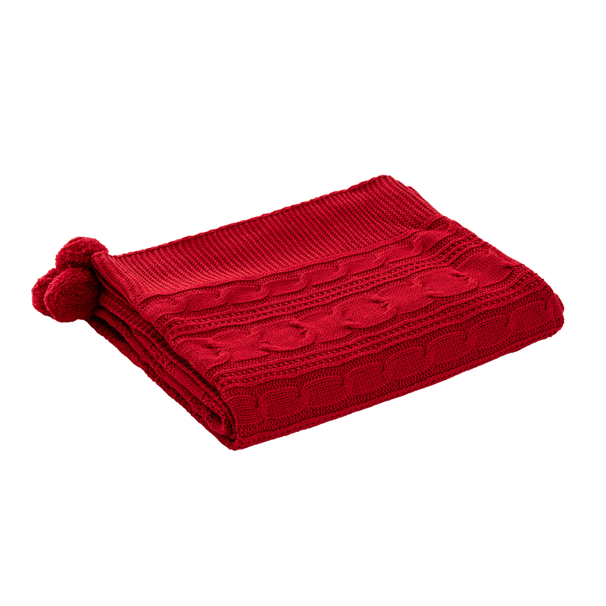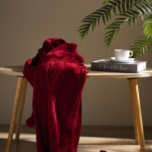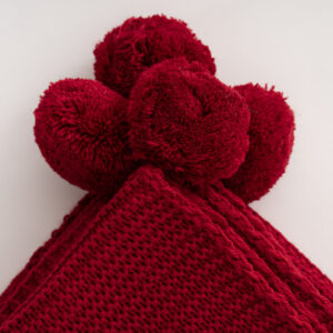 Venda Home Tv Battaniyesi Örgü 4 Ponponlu Ekstra Yumuşak Modern 130×170 Kırmızı Koltuk Şalı